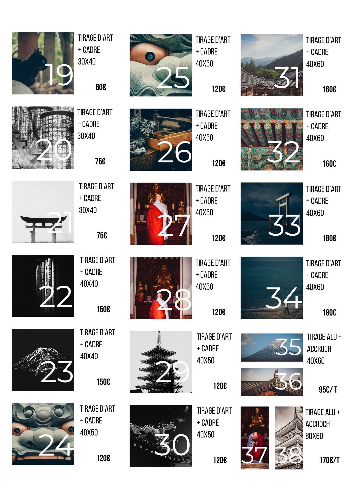 Dans le cadre de l'exposition, vous pouvez acquérir les tirages d'art exposés. Ils sont vendus avec leur cadre.